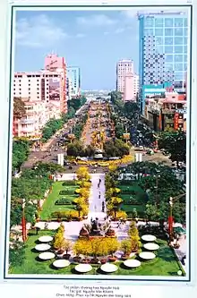 Улица Нгуен Хюэ в Хошимине превращается на время Тета в цветочный бульвар, куда приезжают для того, чтобы посмотреть на многочисленные скульптуры из цветов и другие декорации[32][33].
