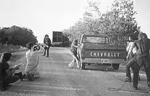 Что касается операторской работы, то Хупер сомневался, кого из профессионалов нанять. Изначально он позвал на эту должность Ричарда Коориса, но выяснилось, что в то время Коорис был уже занят в съёмках другого фильма категории B[30]. Однажды, посещая кинолабораторию, он познакомился с оператором-постановщиком Дэниелом Перлом, которому в то время было 23 года, и он недавно закончил магистратуру в Техасском университете в Остине. После того, как они поделились друг с другом опытом и оператор проинструктировал Хупера, как использовать оптические линзы, режиссёр, которому нужен был техасец для работы, заинтересовался Перлом и примерно через шесть месяцев пригласил его работать над фильмом; Перл быстро принял предложение. Однако из-за задержки начала съёмок Перл забеспокоился, что Хупер заменит его на Ласло Ковача или Вилмоша Жигмонда. Затем он позвонил режиссёру, чтобы узнать, запущен ли проект и когда он начнётся, и получил ответ, что съёмки, на которые было выделено всего семьдесят тысяч долларов, начнутся, как только будет получено ещё десять тысяч. Перл немедленно позвонил своему другу, который был из богатой семьи, и предложил ему инвестировать в фильм, последний, прочитав сценарий, принял предложение[Прим 1]. За это оператор-постановщик получил четыре процента от общей выручки, небольшую часть которой он распределил между членами своей команды, большинство из которых были его учениками или проходили у него стажировку. При съёмках Перл вдохновлялся работой Рассела Ли[30].