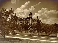 Старое главное здание было центром кампуса и было использовано для всего. Однако, в 30-х годах было решено, что места не хватает, и в 1934 году главное здание было снесено вопреки желанию многих студентов и преподавателей. Современные башня и главное здание были построены на том месте.