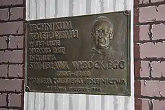 В 1998 году Железнодорожный техникум получил имя Станислава Высоцкого — проектировщика и главного инженера строительства Варшавско-Венской железной дороги. Во время церемонии присвоения имени на здании была установлена табличка с барельефом авторства Евгениуша Козака.