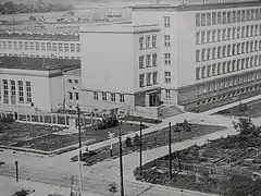 7 сентября 1953 года Железнодорожный техникум Министерства транспорта начал занятия в новом здании на Щесливицкой улице, дом 56 (4 этажа, объём 77 000 м³) по проекту архитектора-инженера Яна Голиньского, в 1955 г. были сданы в эксплуатацию спортивные залы, в 1960 г. — актовый зал. Через два года открылась школа-интернат на 500 мест.