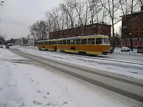 По улице курсируют множество маршрутов городского автобуса, трамвая, маршрутного такси.