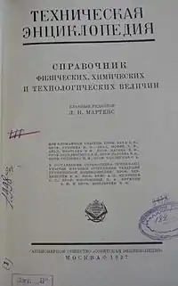 Вместе с энциклопедией в 1927-1936 годы выпускалось 8-томное справочное издание «Техническая энциклопедия. Справочник физических, химических и технологических величин». Оно содержит таблицы физических констант, метрических соотношений, химический состав различных веществ и т. п..