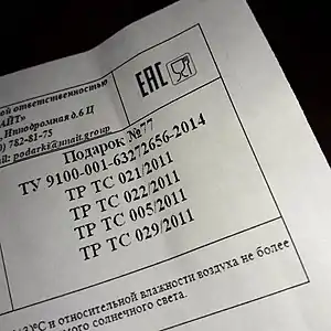 - Технический регламент Таможенного союза «Пищевая продукция в части ее маркировки» (ТР ТС 022/2011)