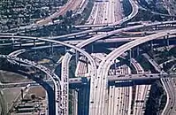 С распространением автомобильного транспорта система городских и сельских дорог также потребовала реконструкции. Её лоббировали созданные по всей стране ассоциации автомобилистов. В результате в 1910-х — 1920-х годах были не только расширены и улучшены уже существующие, но и созданы новые автомагистрали, такие как Первая и Шестьдесят шестая федеральные трассы. Их покрытие далее улучшали после Великой депрессии[28]. Хотя во время второй мировой войны спрос на автомобили упал, крупные автомобильные компании, Ford, General Motors, Chrysler, выжили[29] и обеспечили дальнейший рост автомобилестроения в послевоенный период.