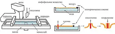 Процесс переноса мономолекулярной плёнки можно повторять многократно, получая, таким образом, различные мультимолекулярные слои[1].