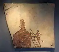 Помимо рисунков, гончарные изделия также декорировали с помощью рельефных решений. Так, мастера с помощью различных штампов наносили на изделия углубления, создававшие орнамент. Кроме того, в специальной форме отливались, подобно барельефам, различные выпуклые части декора, которые потом присоединялись к незастывшей части и обжигались. Позднее рельефные рисунки наносились на сосуды и с помощью мазков полузастывшей глины[4].