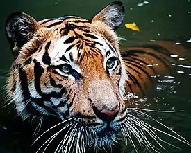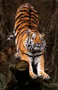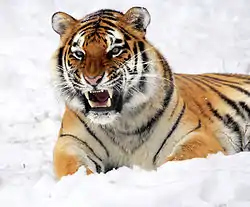 Тигр[1] (лат. Panthera tigris) — вид хищных млекопитающих семейства кошачьих, один из пяти представителей рода пантера (лат. Panthera), который относится к подсемейству больших кошек. Слово «тигр» происходит от др.-греч. τίγρις, которое в свою очередь восходит к др.-перс. *tigri от корня «*taig» со значением «острый; быстрый»[2][3][4].