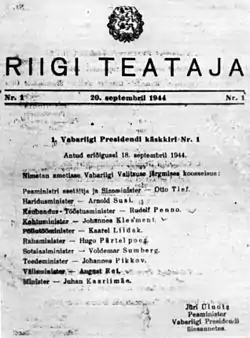 | Предшественник | Каарел Лийдак (как Глава Национального комитета), Йоханнес Барбарус (как премьер-министр) |