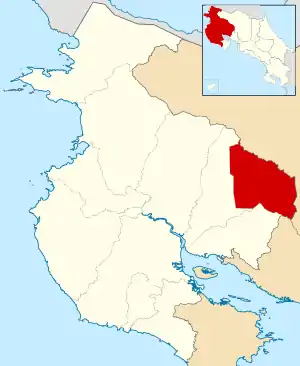 Находится на востоке провинции. На юге и востоке и северо-востоке граничит с провинцией Алахуэла, на юге с провинцией Пунтаренас. В северо-восточной части провинции находится самое большое озеро Коста-Рики Ареналь. Административный центр — Тиларан.