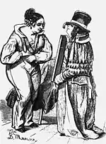 Иллюстрация к книге И. Мятлева «Сенсации и замечания госпожи Курдюковой». Ксилография. 1840—44. - РАЙСКАЯ ПТИЧКА. Мечтание. Спб., в типографии Плюшара 1841 — 32° 3 загл. Листа + 117. Илл. 5 гр. на дереве в тексте.