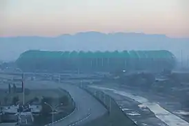 Стадион представляет собой спортивный комплекс, состоящий из футбольного поля с трибунами, вместимостью 43 331 человек. Внешний вид стадиона выполнен в зеленых тонах и напоминает крокодила, часть фасада стадиона выполнена в виде головы рептилии[8][9].