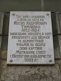 - В Одессе увековечат память Иосифа Тимченко — изобретателя аппарата для съёмки и показа картин (недоступная ссылка)