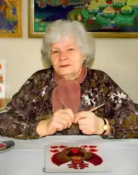 Мастер Петриковской росписи. Занималась украшением изделий из фарфора в народных традициях, применяя технику надглазурной и подглазурной росписи на фарфоре.