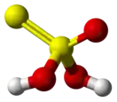 Тиосерная кислота образует бесцветную вязкую жидкость, не замерзающую даже при очень низкой температуре. Термически неустойчива — разлагается уже при комнатной температуре.