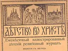 - В 1934 годы в качестве приложения к «Православной Руси» появилось сопутствующее издание «Детство во Христе», ежемесячный иллюстрированный религиозный журнал для детей и подростков, предназначенный для возраста от 7 до 17 лет. Периодичность — 12 выпусков в год, при объёме от 16 до 24 страниц книжного формата[9].