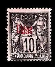 Почтовые марки этого рисунка, изготовленные с зубцовкой, были в обращении на территории самой Франции, а также во французских почтовых отделениях за рубежом. Первый выпуск для Франции, включавший 12 марок (№ 56 и др.), появился 15 июня 1876 года[2][3]. Почтовые марки, специально подготовленные для использования за рубежом, не выходили до середины-конца 1890-х годов, когда перед поступлением в продажу на марках этой серии были сделаны надпечатки самого разного вида.