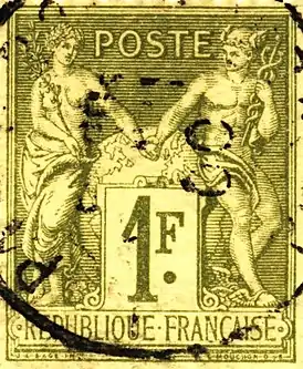 - Примеры почтовых марок типа Саж для Франции, колоний и французской почты за границей