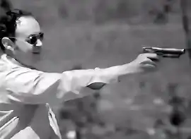 ![]() старший офицер-испытатель иностранного вооружения Гарольд Джонсон с пистолетом «Тип 64», Форт-Брэгг (Северная Каролина) | |