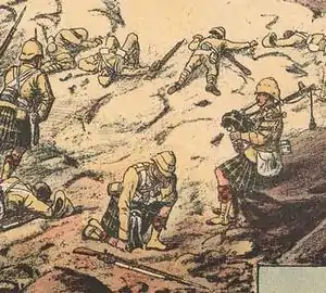 ![]() Сержант Джордж Финдлейтер играет на волынке во время штурма Даргайских высот | |||