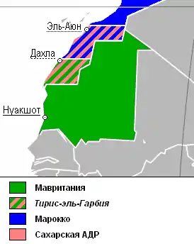 В 1975 году в результате Мадридских соглашений северные две трети Западной Сахары (Сегиет-эль-Хамра и север Рио-де-Оро) отошли Марокко, а южная треть досталась Мавритании. Оба государства заявляли о своих исторических правах на эти территории, однако Международный суд ООН, подтвердив связь западно-сахарских племен с Марокко и Мавританией, вынес заключение, что это не может служить основанием для отказа Западной Сахаре в праве на самоопределение. Данное право теоретически было предоставлено всем колониям в 1960 году.