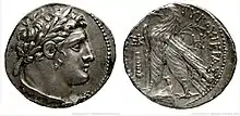 В период со 126 года до н. э. до 56 года н. э. на лицевой стороне монеты изображался бог финикийцев Мелькарт, которого греки отождествляли с Гераклом, на обратной стороне — орёл. Греческая надпись на монете гласит ΤΥΡΟΥ ΙΕΡΑΣ ΚΑΙ ΑΣΥΛΟΥ («Cвятого и неприкосновенного города Тира»)[4][5].