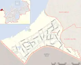 Расположен на западе Таллина, на берегу залива Какумяэ. Ручей Тискре отделяет его от столичных микрорайонов Какумяэ и Висмейстри. Граничит с волостью Харку. Площадь — 1,39 км2[1]. На территории микрорайона находится пляж Тискре.