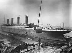 31 мая 1911 года по случаю спуска «Титаника» на воду на набережной Белфаста и на песчаных отмелях реки Лаган собралось порядка 100 000 человек. Большой резонанс был вызван ещё и тем, что на этот же день «White Star Line» запланировала выход из Белфаста успешно прошедшего ходовые испытания «Олимпика»[31]. На специальной трибуне возле корпуса лайнера находились почётные гости: владелец треста «IMM» Джон Пирпонт Морган, Джозеф Брюс Исмей с дочерью Маргарет, лорд и леди Пирри, мэр Белфаста и другие сановники. Неподалёку от носовой части были установлены ещё три трибуны: две для приглашённых гостей, одна для прессы[32]. Как и все суда компании «White Star Line», «Титаник» не проходил традиционный обряд «крещения», о его борт не разбивали бутылку с шампанским.