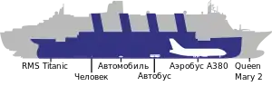 | Высота | 18,5 м (от ватерлинии до шлюпочной палубы[комм. 3]) |