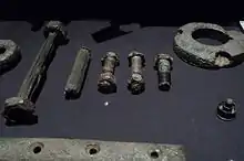 Каркас корабля обшивался стальными листами 9 × 1,87 м толщиной от 2,5 до 3,8 см, массой колебавшейся в зависимости от толщины в диапазоне от 2,5 до 4,5 т[23]. Листы наружной обшивки имели одинаковый размер с листами настила палуб. Габариты были стандартными для сталелитейного производства того времени. При строительстве «Титаника» использовалась сталь наивысшего сорта, которая ещё долгие годы после него оставалась промышленным стандартом. Однако стальные листы ещё до крепления имели небольшой дефект. Дело в том, что на верфи «Harland & Wolff» перфорацию заклёпочных отверстий осуществляли «холодным способом» при помощи пробойника и кувалды, в результате по периферии отверстий образовались микротрещины[24]. Листы скреплялись тремя рядами стальных и железных заклёпок. Железо для заклёпок не было наивысшего качества. Заказывая материал для заклёпок, «Harland & Wolff» остановила свой выбор на бруске № 3 стандарта «Best», в то время как большинство судостроителей уже тогда предпочитали использовать образец № 4 («Best-best»), традиционно шедший на изготовление якорей, цепей и заклёпок. Предел прочности на разрыв в образце № 4 приближался к 80 % от аналогичной характеристики стали, тогда как в № 3 составлял только 73 %[23]. Всего на постройку «Титаника» ушло свыше трёх миллионов заклёпок. 75 % из них забивались вручную, остальные — при помощи гидравлической клепальной пушки[25][26].