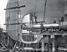 Тяжеловесное оборудование устанавливали на места при помощи немецкого плавучего крана грузоподъёмностью 250 тонн. Котлы были опущены в котельные отделения через шахты дымовых труб. Отливку деталей и производство механизмов осуществляли литейные и сборочные цеха преимущественно «Харленд энд Вулф». До начала отделочных работ были смонтированы электрооборудование, водопровод и система вентиляции[36].
