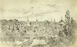 Софья Пророкова, автор биографии Левитана, писала, что «Юрьевец привлёк симпатии художника» и, в частности, «обворожил его один монастырь, расположенный в лесу на противоположном берегу около большого Кривого озера»[7]. Софья Кувшинникова рассказывала, сравнивая с более ранними впечатлениями от вида Саввино-Сторожевского монастыря под Звенигородом[8][9]: