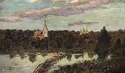 Левитан поехал из Плёса в Юрьевец в надежде найти там новые мотивы и, бродя по окрестностям, вдруг наткнулся на ютившийся в рощице монастырёк. Он был некрасив и даже неприятен по краскам, но был такой же вечер, как в Саввине: утлые лавы, перекинутые через речку, соединяли тихую обитель с бурным морем жизни, и в голове Левитана вдруг создалась одна из лучших его картин, в которой слились и саввинские переживания, и вновь увиденное, и сотни других воспоминаний.