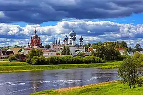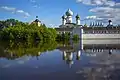 - Успенский собор (построен в 1515 году итальянским архитектором Фразини[1]). В XVIII веке он претерпел ряд изменений: был разобран придел во имя святителя Николая, несколько длинных и узких окон перед чудотворной иконой были заменены одним большим, чугунные плиты пола были заменены лещадными, амвон стал гранитным[1]. Кроме того, настенная живопись собора в XVIII веке была счищена, и стены вновь были расписаны под руководством иконописца Логгина Шустова[1].