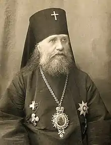 Высочайший рескрипт, данный ему 6 мая 1916 года, гласил: «<…> Ваши непрестанные святительские заботы о благе паствы вашей <…> снискали Моё Монаршее благоволение, в изъявление коего Всемилостивейше жалую вам препровождаемый при сем бриллиантовый крест для ношения на клобуке»[26].