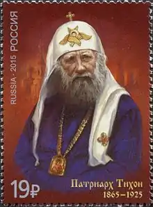 Патриа́рх Ти́хон (в миру Васи́лий Ива́нович Белла́вин[3][Комм 1]; 19 [31] января 1865, погост Клин, Торопецкий уезд, Псковская губерния — 7 апреля 1925, Москва) — епископ Православной российской церкви; с 21 ноября (4 декабря) 1917 года патриарх Московский и всея России[4][5], первый после восстановления патриаршества в России.