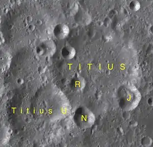 - Образование сателлитного кратера Тициус Q относится к нектарскому периоду[1].