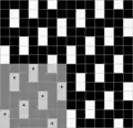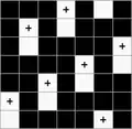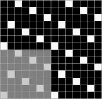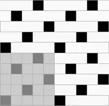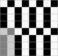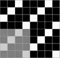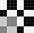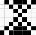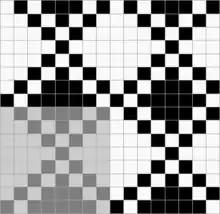 Ткань, в которой нити основы и утка образуют достаточно крупные квадраты, расположенные в шахматном порядке[1] Обозначается дробью. В числителе — степень усиления в направлении основы и утка первого одиночного основного перекрытия в раппорте полотняного переплетения, в знаменателе — степень усиления в направлении основы и утка второго одиночного основного перекрытия в раппорте полотняного переплетения.