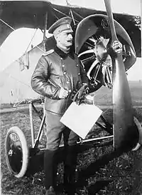 4 июля 1915 году, производя воздушную разведку в районе рек Лины и Стыри, вскрыл сосредоточение сильной ударной германской группировки.