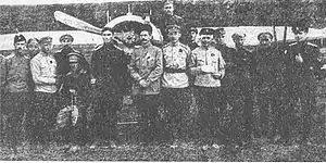 1 августа 1916 года В. М. Ткачёв[1] сбил австрийский аэроплан «Авиатик», причём аппарат и оба лётчика попали в руки русских воинов. В августе 1916 года Ткачев возглавил 1-ю истребительную авиагруппу. Своё первое боевое крещение летчики авиагруппы получили во время прорыва воздушной блокады немецкой авиации в сентябре 1916 года под Луцком. Тогда отважным русским пилотам удалось добиться существенного перелома в борьбе за господство в воздухе, а Ткачев стал первым асом России (по тем временам ас — летчик, сбивший не менее пяти вражеских самолетов).