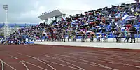 - Легкоатлетический сектор — 8 дорожек (покрытие «Эластур»), сектор для толкания ядра, прыжков в длину и в высоту
