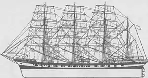 | Тип парусного вооружения | 4-мачтовый барк |