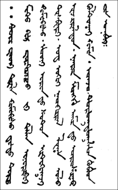 ᡋᡅᡒᡅᡎ, «ясное письмо») — письменность, созданная в 1648 году на основе старомонгольского письма ойратским просветителем, буддийским монахом Зая-Пандитой для приближения письменности к произношению, а также упрощения записи санскритских и тибетских заимствований, широко использовавшихся в религиозных текстах.