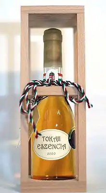 - Токайская эссенция — напиток, который изготавливают методом слабого брожения из собранных вручную заизюмленных ягод винограда. Для изготовления эссенции используют сок, который вытекает из винограда без давления, только под собственной тяжестью. Эссенция делается из чистого изюма, поэтому сока образуется мало, но в нём очень высокий процент содержания сахара. После длительной выдержки вино становится столь густым и сахаристым, как сусло.