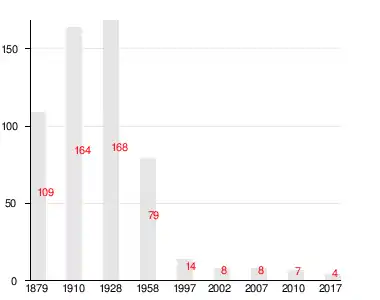 Число жителей по семейным спискам 1879 г.: 51 м. п., 58 ж. п.; по приходским сведениям 1879 г.: 55 м. п., 64 ж. п[3].