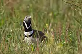 Стрепета выбирают для своих токований какой-нибудь бугорок, или плужную борозду, или дорогу; при токовании стрепет подпрыгивает, всегда на одном месте, на некоторую высоту от земли, делает взмах крыльями, затем ударяет плюсной ног о землю, издавая характерный звук (трр…); удары и выкрикивания повторяются приблизительно через каждые 10—15 секунд.