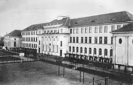 - Государственная гимназия имени Стефана Батория на улице Охотничей, 6 в Варшаве. Построено в 1925 году. Была довольно прогрессивной для своего времени сооружением с соблюдением высоких санитарных требований. Кроме классных комнат, актового зала, школьных складов имела свой гардероб, кухню, столовую, собственную котельную, бассейн, специализированные залы для физического и трудового воспитания, для уроков физики, химии. Четырехугольная в плане образовывала большой внутренний двор 27×33 г. Живописно проработано окружение с газонов, сада, стадиона.[16]