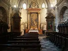 Капелла Сан-Блас (Святого Власия) расположена в северо-восточном углу клуатра, то есть противоположном от входа. Часовня была построена одновременно с самим клуатром при архиепископе Педро Тенорио как его будущая усыпальница[28]. Вход в капеллу из клуатра осуществляется через готические ворота, с колоннами и архивольтами, украшенными растительным орнаментом. В центре часовни расположены два мраморных саркофага — архиепископа Педро Тенорио, и его племянника, епископа Бальбоа.