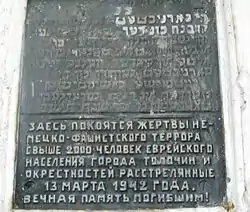 ![]() Памятник на месте расстрела евреев Толочина | |