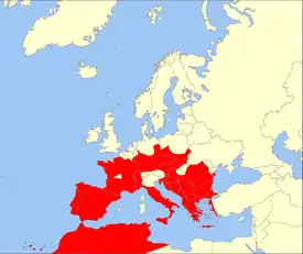 Южная и Центральная Европа, Малая Азия, Средний Восток, Северо-западная Африка, Канарские острова.